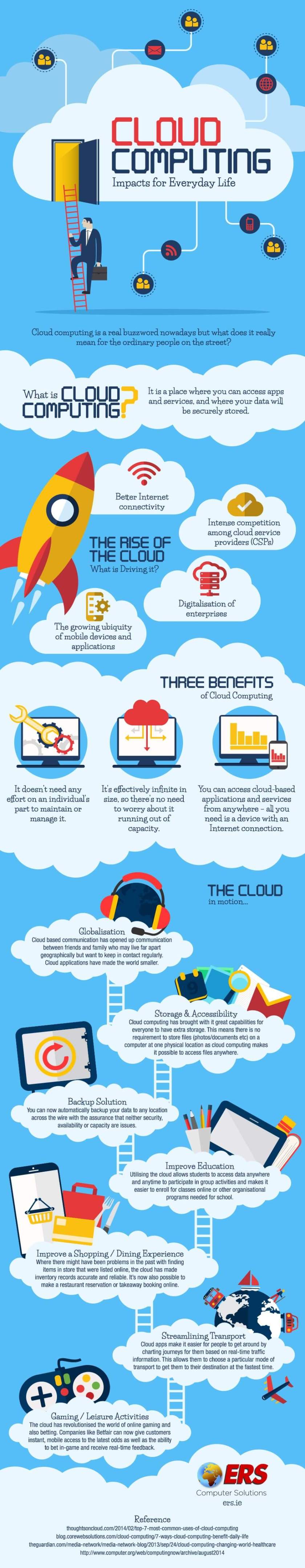 As its name suggests, the following infographic illustrates the heterogeneity of use cases for cloud computing in everyday life. Courtesy of ERS Ltd., the infographic highlights drivers behind cloud computing as well as its benefits.