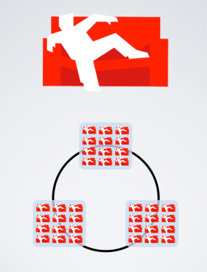 CouchDB will benefit principally from the clustering functionality that became one of the trademarks of BigCouch. Unlike CouchDB, BigCouch nodes reside in elastic clusters marked by consistent hashing, quorum rules for read/write operations and parallel indexing on data partitions as illustrated by the three node BigCouch development cluster below, in contrast to the unified CouchDB configuraton at the top of the picture: